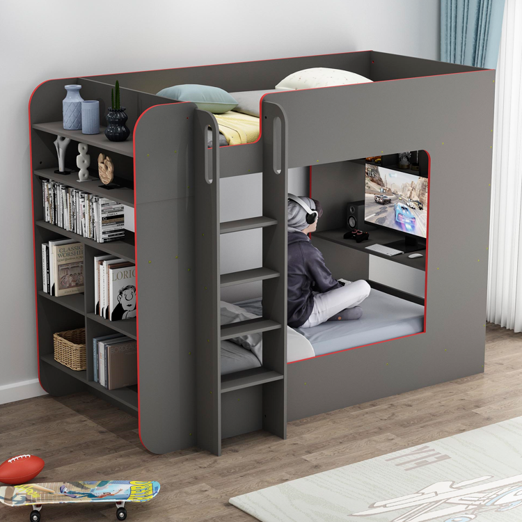 تخت دو طبقه با میز و صندلی یکی از مدل‌های محبوب برای نوجوانان و جوانان است. در این مدل، فضای پایین تخت به یک میز مطالعه یا میز تحریر تبدیل می‌شود که به دانش‌آموزان و دانشجویان این امکان را می‌دهد که در همان اتاق خود فضایی برای مطالعه یا کار داشته باشند. این طراحی به‌ویژه برای اتاق‌های کوچک که نمی‌توانند میز جداگانه‌ای برای مطالعه داشته باشند بسیار مناسب است.