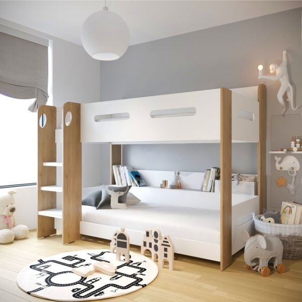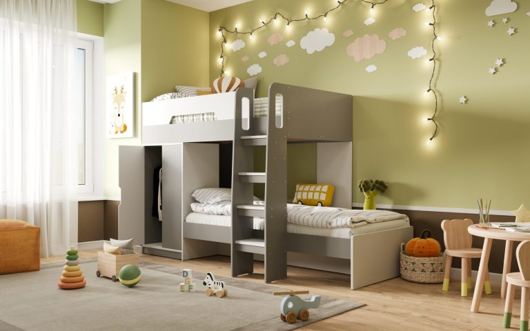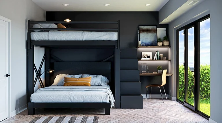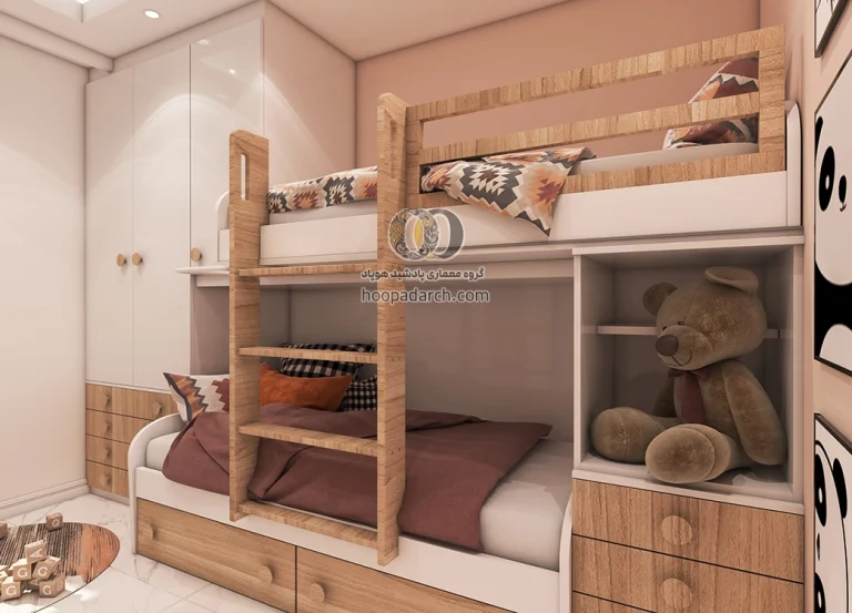 طراحی دکوراسیون اتاق خواب با تخت دو طبقه