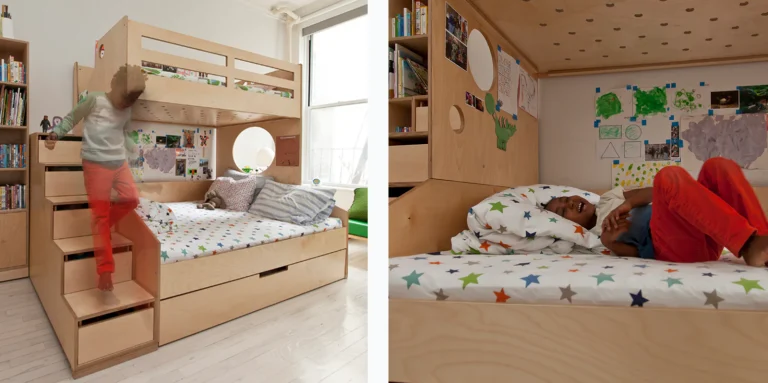 برای اتاق‌های کوچک تخت‌های دو طبقه‌ای که دارای کشو یا قفسه در زیر تخت هستند، می‌توانند کمک زیادی به سازمان‌دهی وسایل کنند. اگر اتاق برای کودک است می‌توانید فضای زیر تخت را به یک منطقه بازی هیجان‌انگیز تبدیل کنید که کودک شما بتواند در آن سرگرم شود. همچنین برای نوجوانان فضای زیر تخت می‌تواند به یک ناحیه مطالعه یا استراحت تبدیل شود که به افزایش کارایی و راحتی فضا کمک می‌کند.