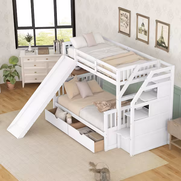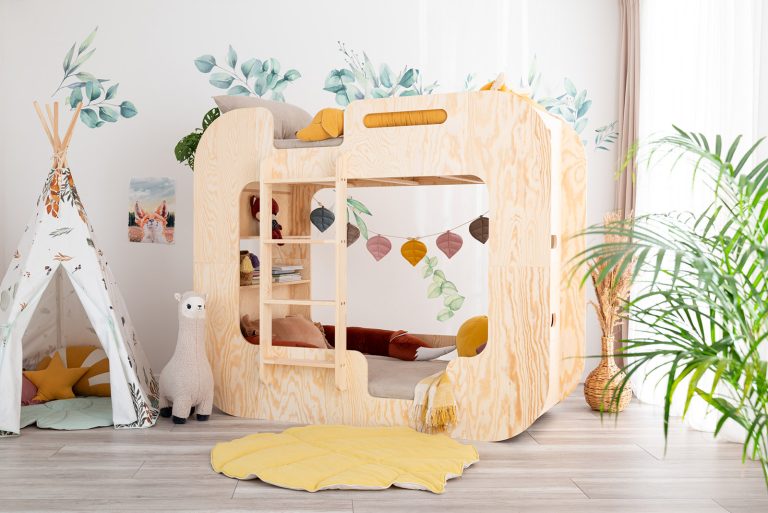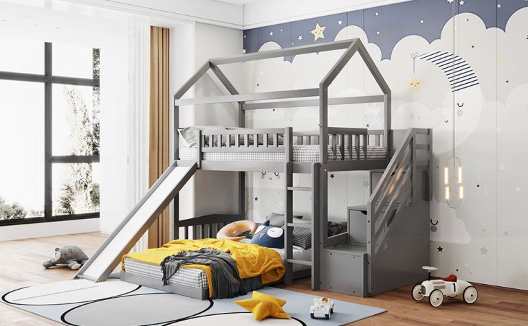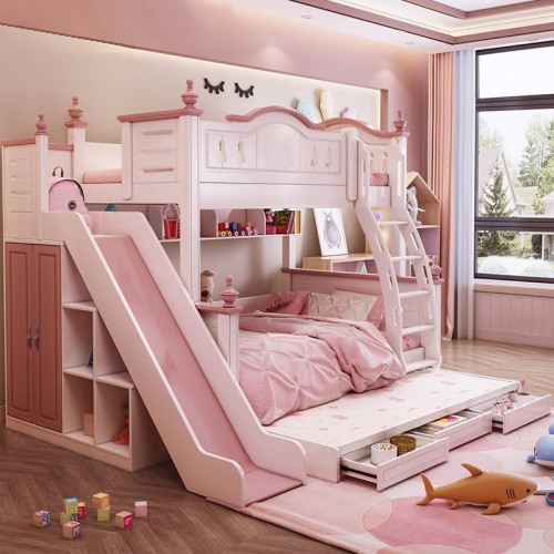 تخت دو طبقه با سرسره، یکی از مدل‌های بسیار جذاب و پرطرفدار برای اتاق‌های کودکان است. در این مدل، به جای پله‌های معمولی، از یک سرسره برای دسترسی به تخت بالا استفاده می‌شود. این ویژگی به‌ویژه برای کودکان کوچک بسیار هیجان‌انگیز است و آن‌ها می‌توانند با بازی و سرگرمی از تخت پایین به تخت بالا بروند. علاوه بر این فضای زیر تخت نیز می‌تواند برای بازی و سرگرمی کودکان به‌کار رود این نوع تخت نه تنها کاربردی است، بلکه با طراحی‌های شاد و رنگارنگ، اتاق کودک را به فضایی جذاب و دلنشین تبدیل می‌کند.
