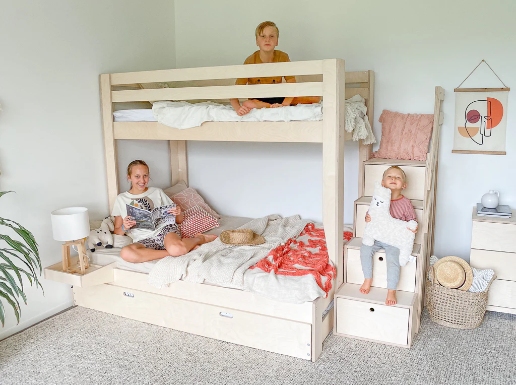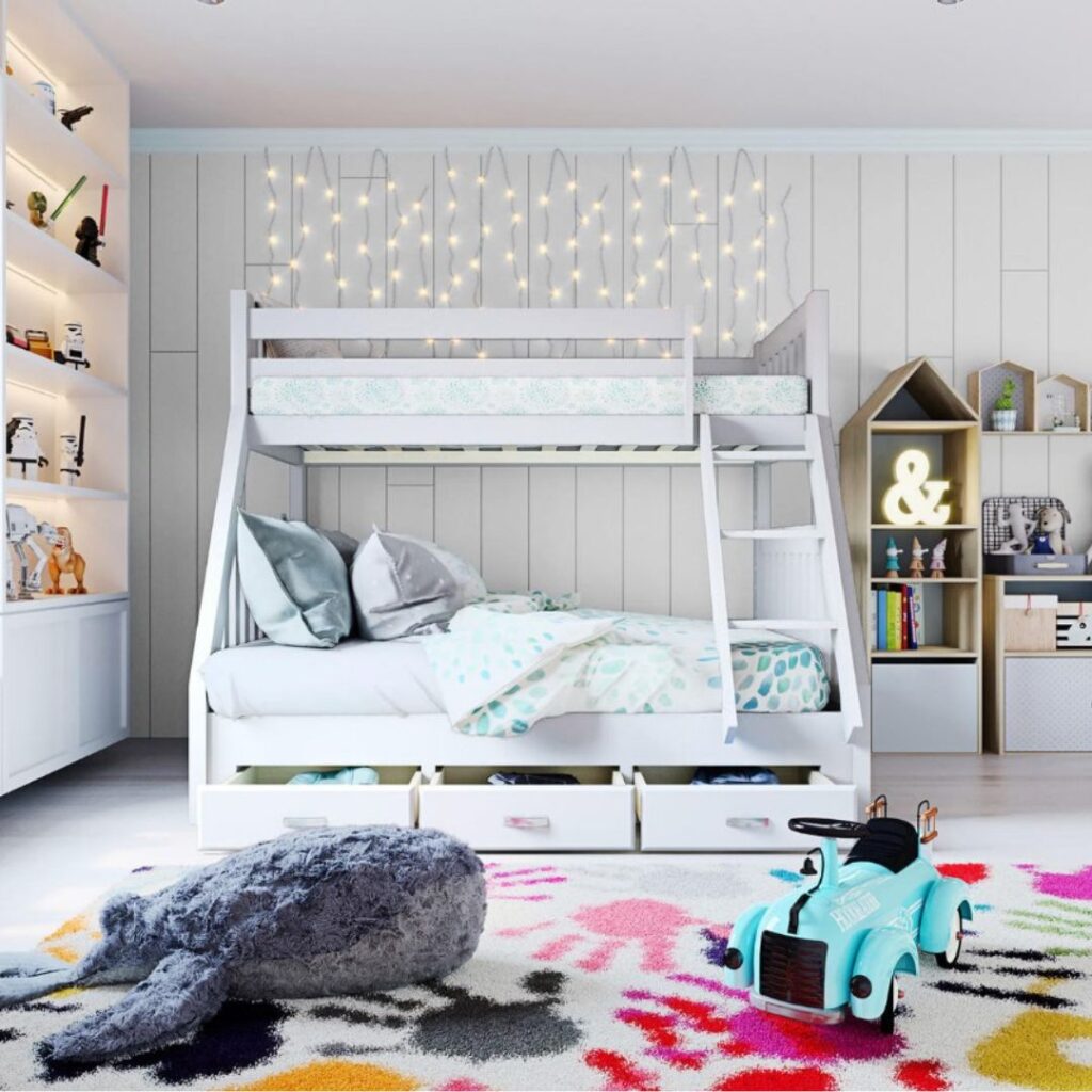 اگر به دنبال راهی برای بهینه‌سازی فضای اتاق خواب هستید، تخت دو طبقه با کشو و قفسه بهترین گزینه است. این مدل تخت‌ها علاوه بر فضای خواب، دارای کشوها و قفسه‌های اضافی هستند که می‌توانند وسایل مختلف مانند لباس‌ها، کتاب‌ها یا اسباب‌بازی‌ها را در خود جای دهند. این ویژگی به‌ویژه برای اتاق‌های کوچک یا اتاق‌هایی که کودکان زیادی در آن زندگی می‌کنند، بسیار کاربردی است. علاوه بر این، طراحی دکوراسیون اتاق خواب از این نوع می‌تواند بسیار منظم و مرتب باشد، چرا که شما می‌توانید تمامی وسایل را در کشوها و قفسه‌ها ذخیره کنید و اتاق همیشه مرتب بماند.