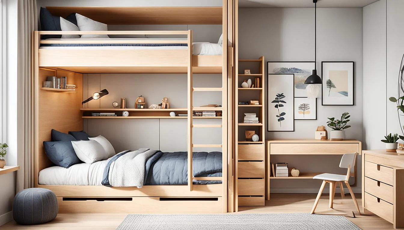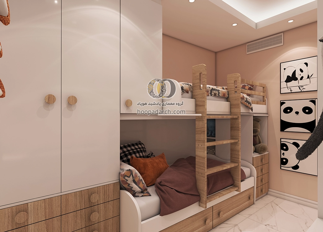 طراحی دکوراسیون اتاق خواب با تخت دو طبقه