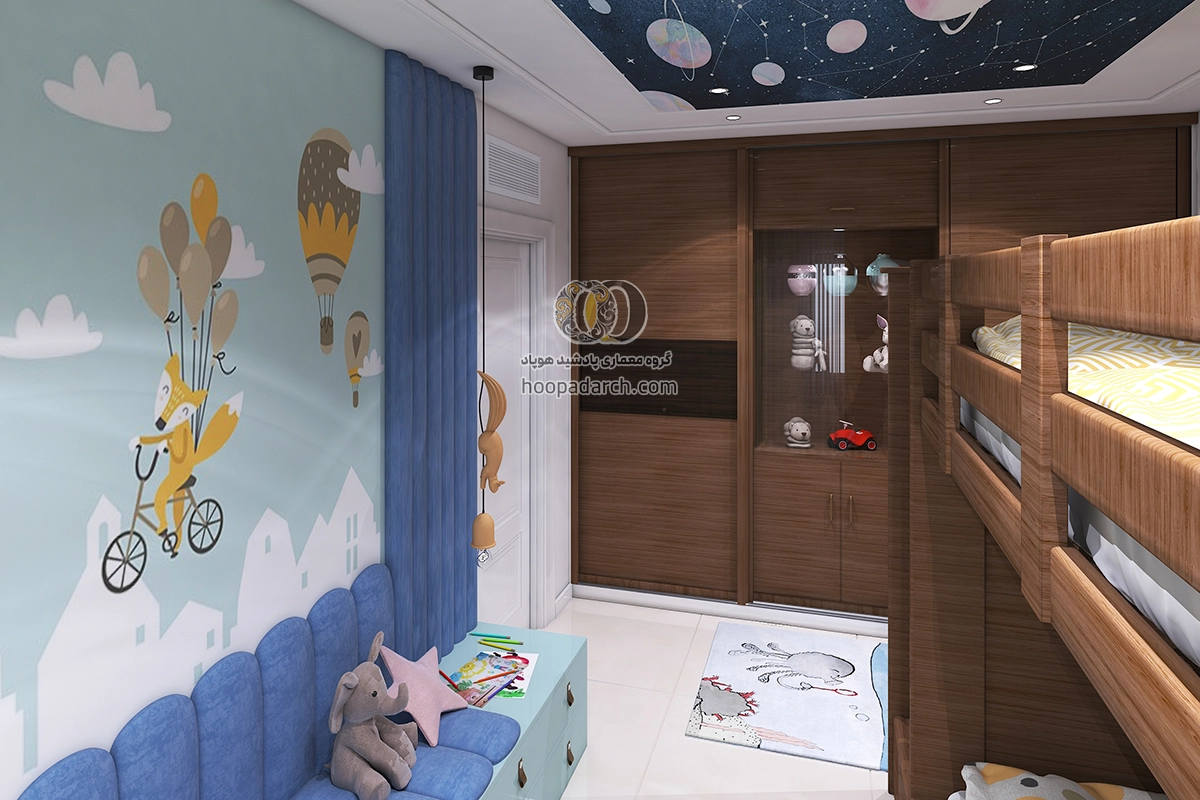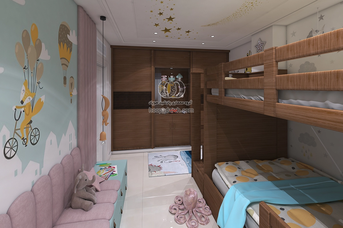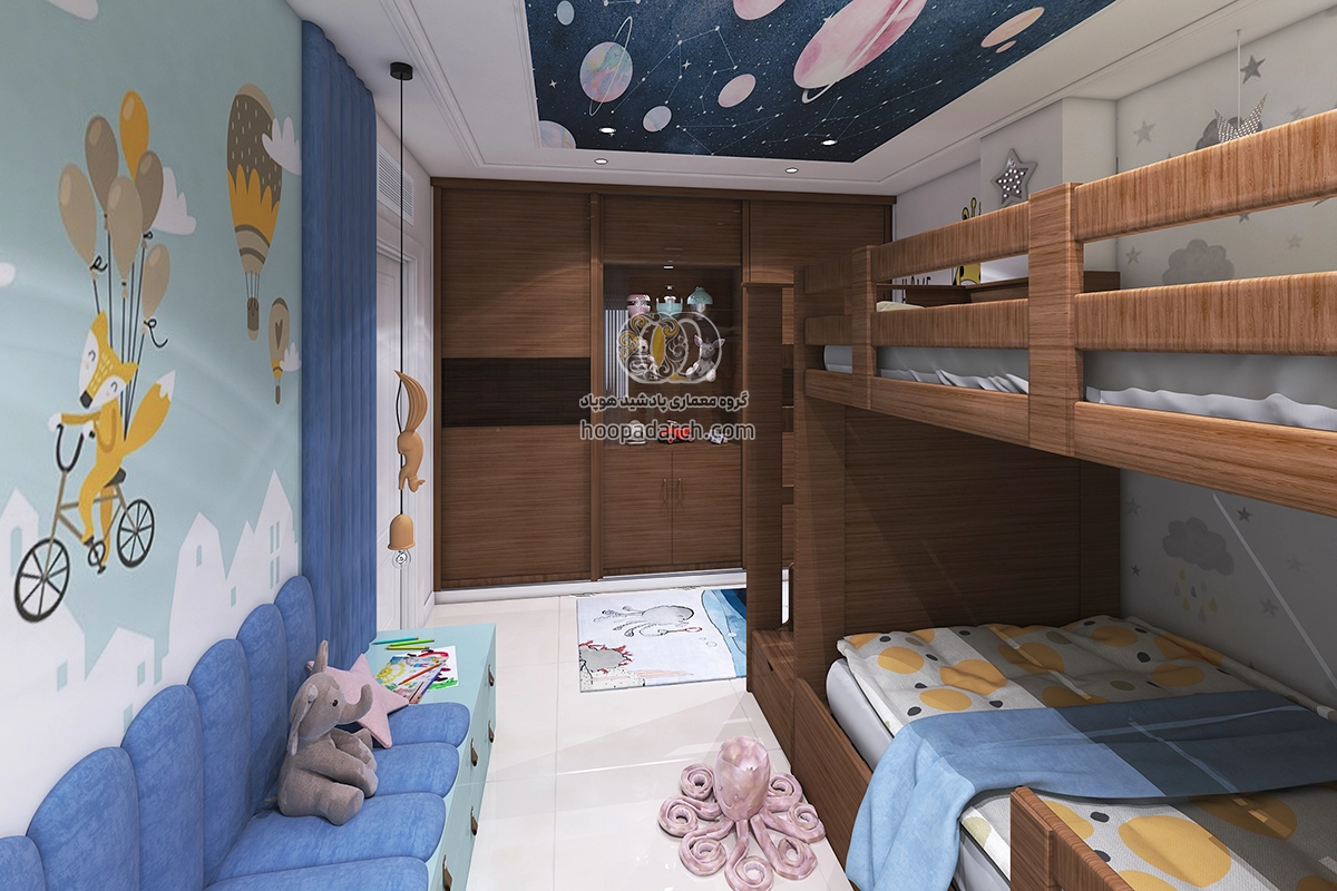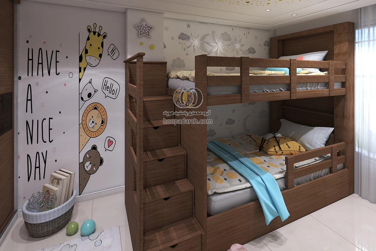 اگر تخت دو طبقه برای اتاق کودک است می‌توانید از رنگ‌ها و طرح‌های فانتزی برای روتختی و پرده‌ها استفاده کنید. برای اتاق نوجوانان انتخاب لوازم جانبی مدرن‌تر و ساده‌تر مانند وسایل ورزشی، کاغذ دیواری های طرح دار و نصب تلوزیون دیواری برای بازی های رایانه ای می‌تواند فضای شیک‌تری ایجاد کند. نورپردازی نیز نقش مهمی در زیبایی اتاق دارد نصب چراغ‌های دکوری یا نوارهای LED زیر تخت می‌تواند جلوه زیبایی به فضا بدهد و به آن انرژی بیشتری ببخشد برای گرفتن ایده میتوانید علاوه بر جست و جو سایت هایی مثل پینترست و سایت های دکوراسیون داخلی ارسال طرح دلخواه خودتون برای ما، نمونه کارهای انجام شده توسط هوپاد را هم بررسی کنید. برای مشاوره رایگان و راهنمایی شما منتظر تماس تون هستیم.