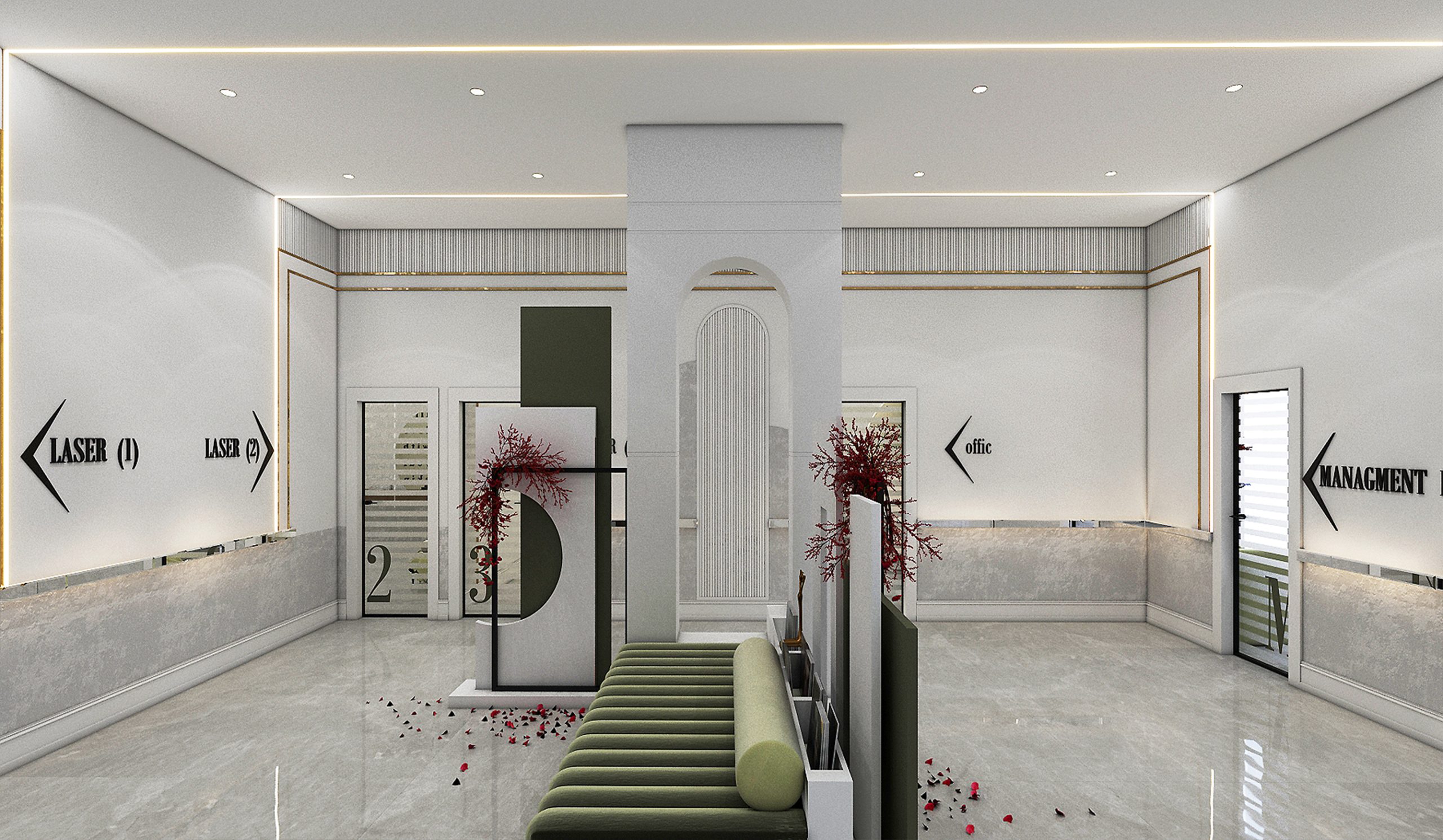 Modern-style beauty clinic design with an area of 500 square meters.