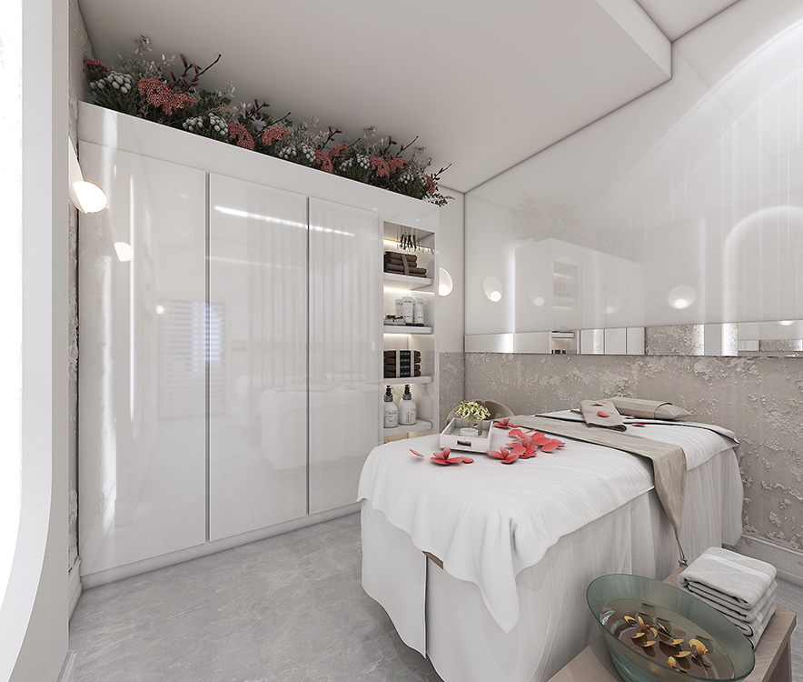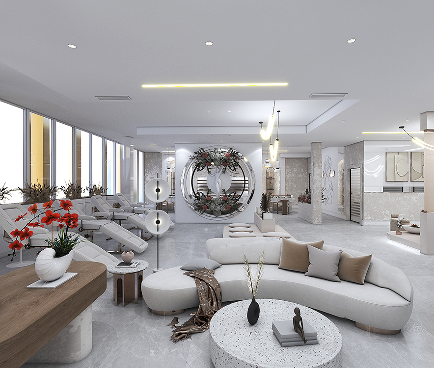 Modern-style beauty salon design with an area of 500 square meters.