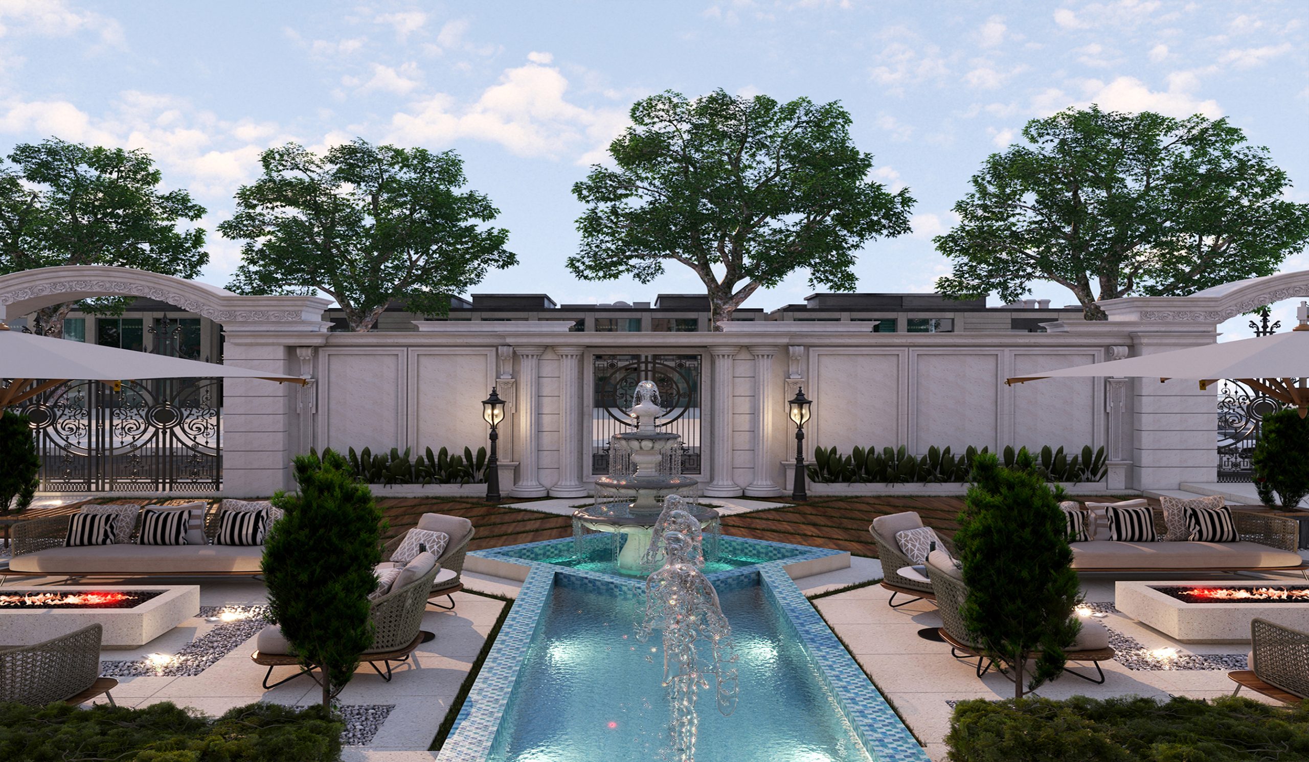 .design of the 1200-square-meter project’s facade and landscaping in a classical style.