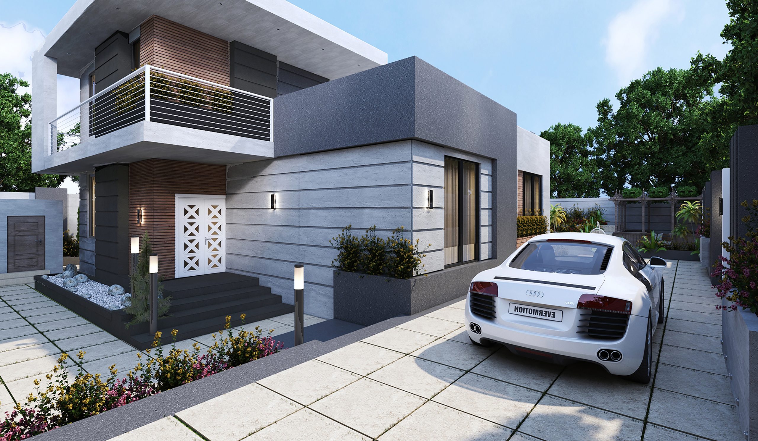 Modern facade and landscaping design for a 1,000 square meter project