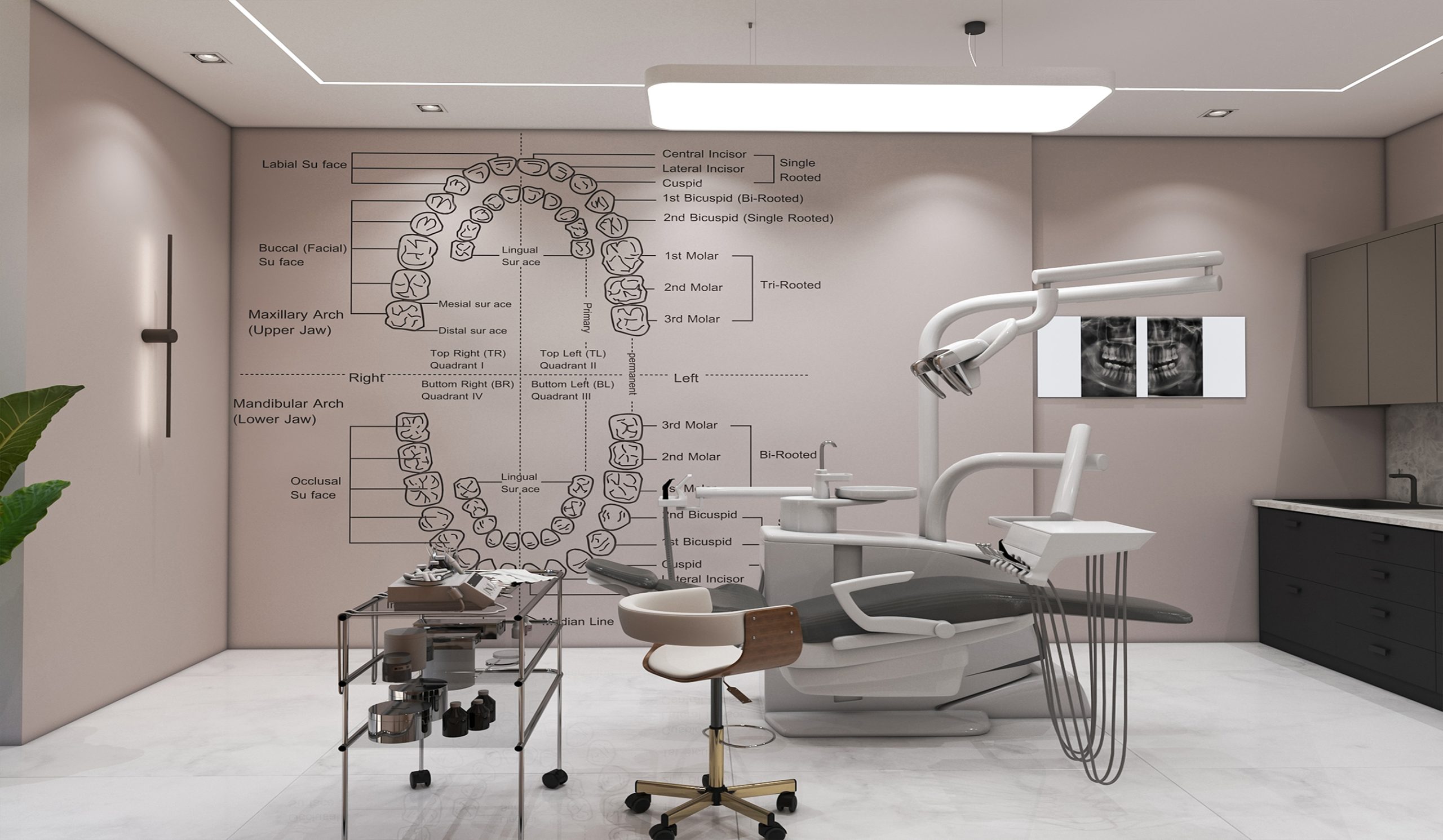 Interior design of the clinic in a modern style with an area of 428 square meters.