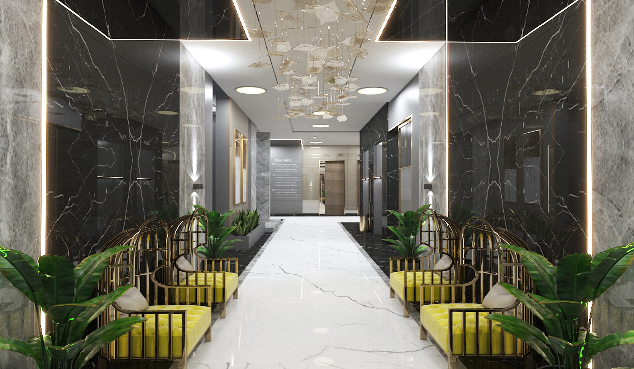 This image showcases the modern and stylish interior of a beauty clinic named CYRA Beauty Clinic. Its minimalist design, utilizing neutral colors and gold accents, creates a luxurious and welcoming atmosphere. Overall, this design is both luxurious, minimal, and inviting—perfectly suited for a beauty clinic.The interior design of this clinic, in terms of composition and choice of elements, is carefully crafted to evoke a sense of luxury, minimalism, and hospitality. Considering your design projects, this style can serve as great inspiration for reception areas, entrances to luxury salons, and cozy, relaxing sections Strategically placing the clinic’s name and logo enhances brand identity and conveys a professional impression to clients