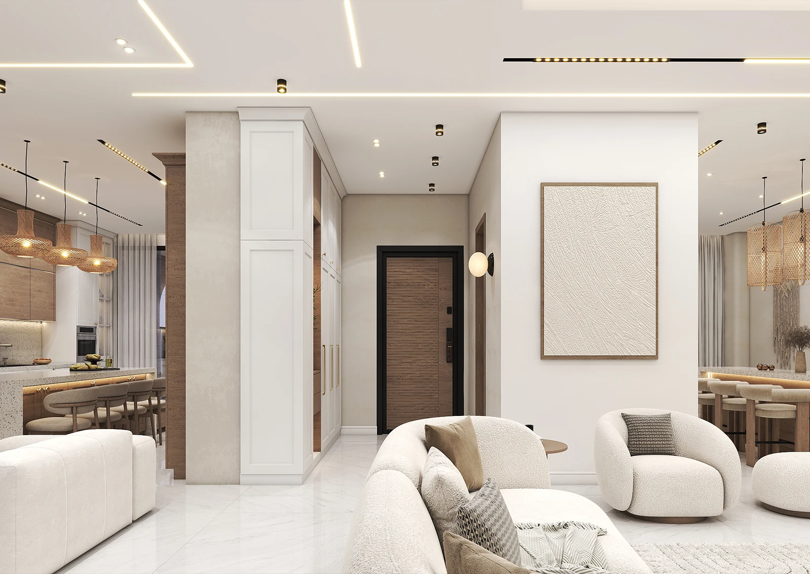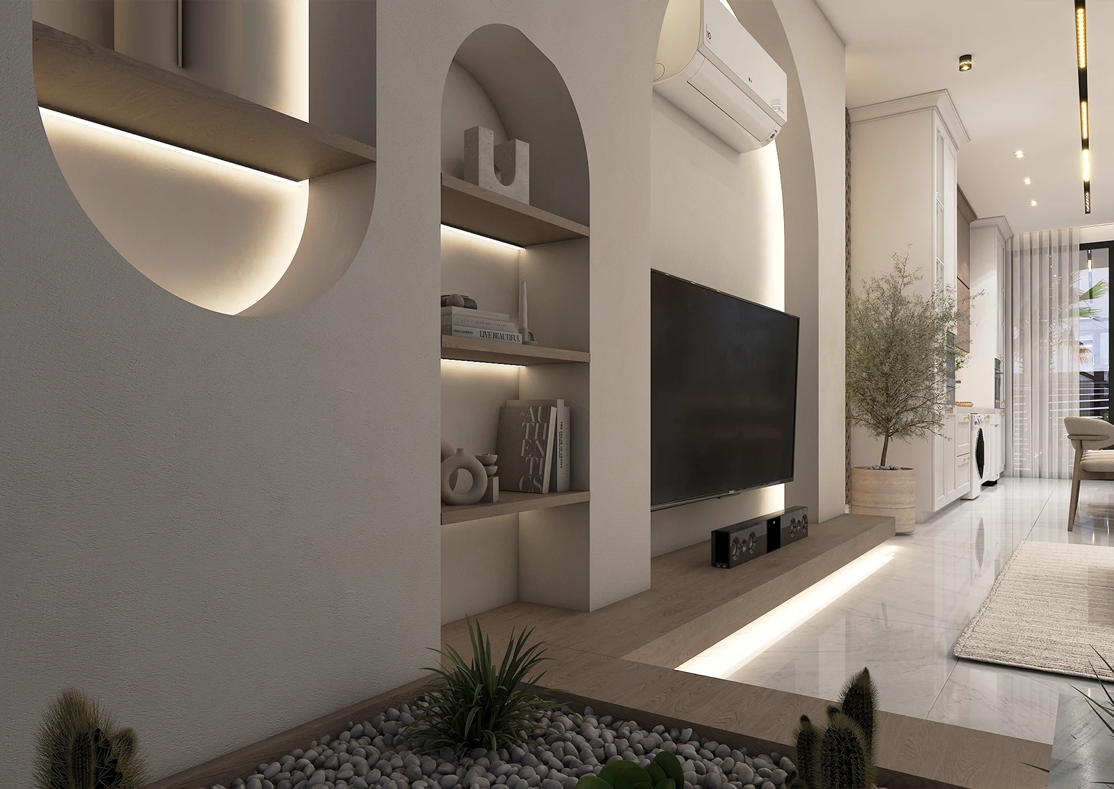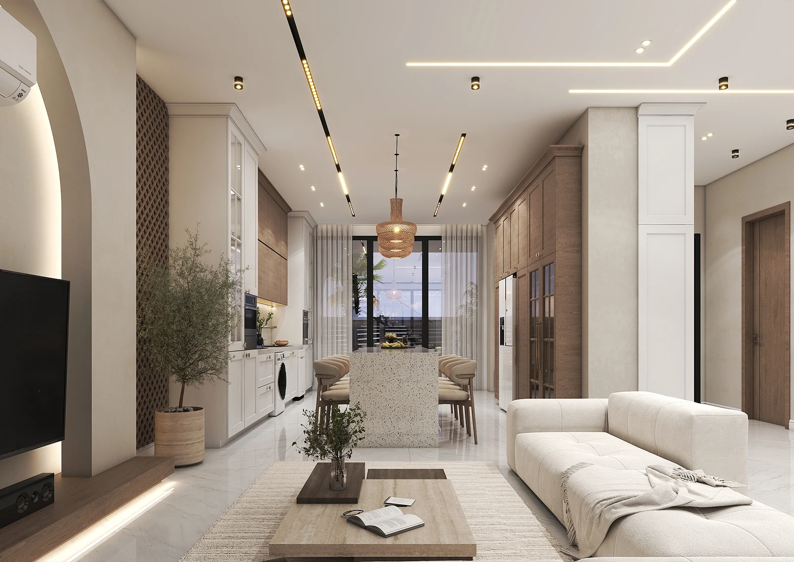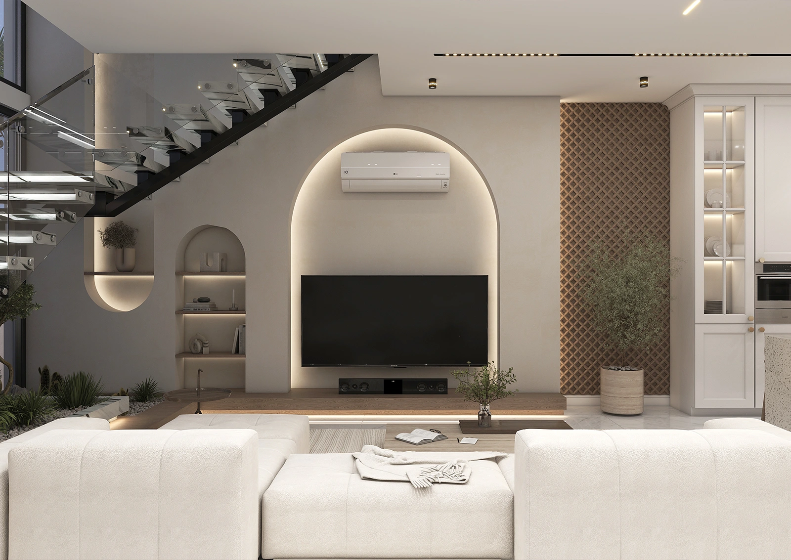 In this house, arches appear as bridges between the past and the present. The soft, curved arches are reminiscent of classical architecture, but translated into today’s language with modern, minimalist lighting. These arches not only create visual beauty, but also create a sense of invitation and peace in the space, as if each arch is a gateway to a moment of stillness.