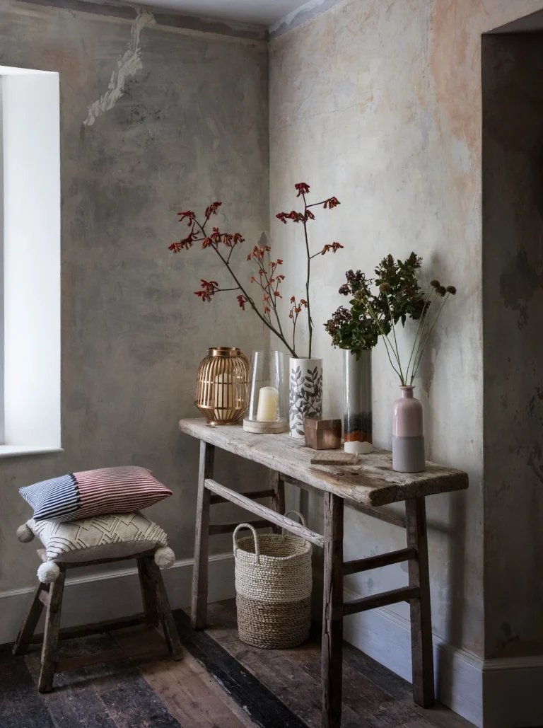 چوب فرسوده و قدیمی، حس و حال گرانج را به خوبی منتقل می‌کند. پالت های چوبی قدیمی یا الوار های نا متقارن برش خورده را می‌توانید از فروشگاه‌های آنلاین یا فروشندگان چوب بازیافتی تهیه کنید.