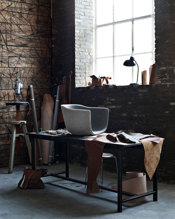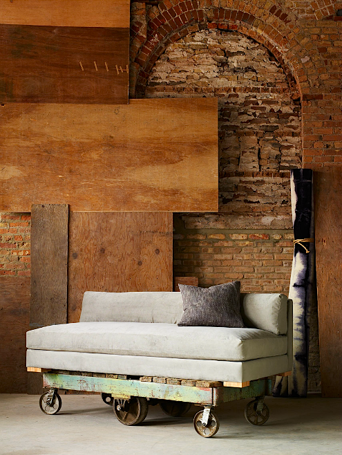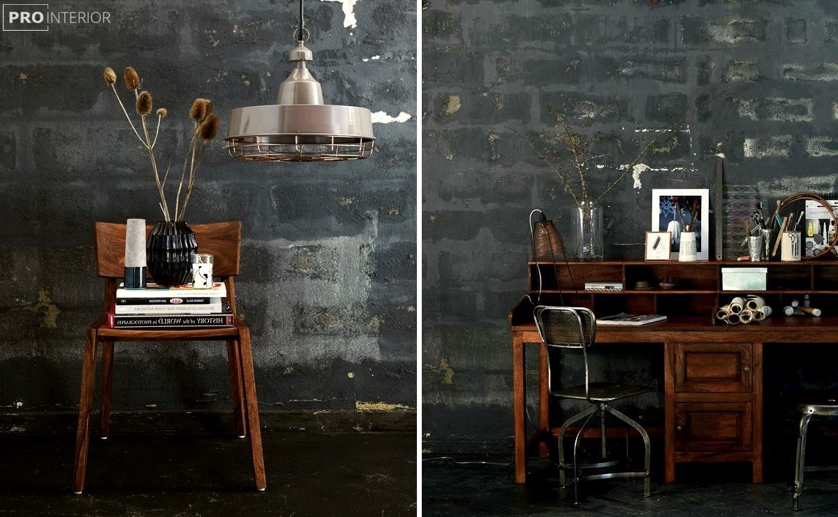 بهتر است مبلمان پارچه‌ای به رنگ‌های روشن انتخاب شود که علاوه بر راحتی، دوام خوبی نیز داشته باشد. استفاده از کمدهای بزرگ در این سبک کمتر رایج است و بهتر است به جای آن از طراحی‌های سبک‌تر با درب‌های خاص استفاده شود. میز و صندلی نیز باید به‌اندازه‌ی مناسب باشند تا با طراحی خشن دیوارها کنتراست ایجاد کنند.