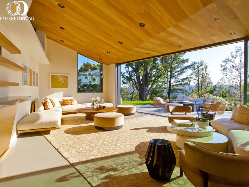 • رنگ‌های خنثی و طبیعی برای هماهنگی فضای داخلی با محیط بیرون