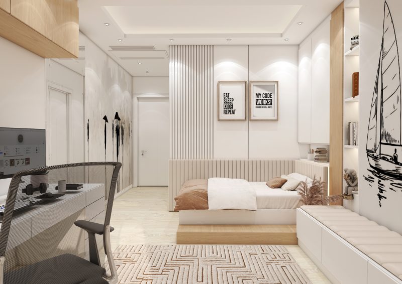 خانه » Portfolios » طراحی داخلی » طراحی اتاق خواب پسر نوجوان کرمی پروژه ی۳۰۰ متری آقای نامی شیان