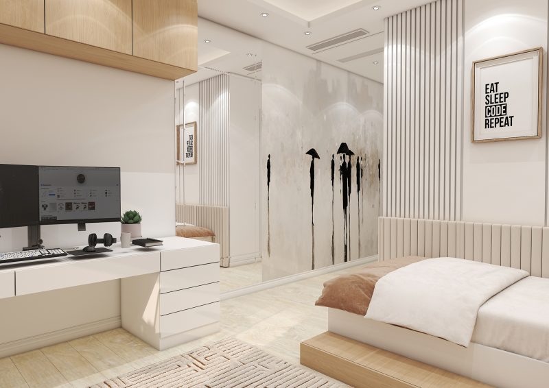 - طراحی داخلی اتاق دختر به سبک مدرن متراژ کلی پروژه ۳۰۰ متر مربع