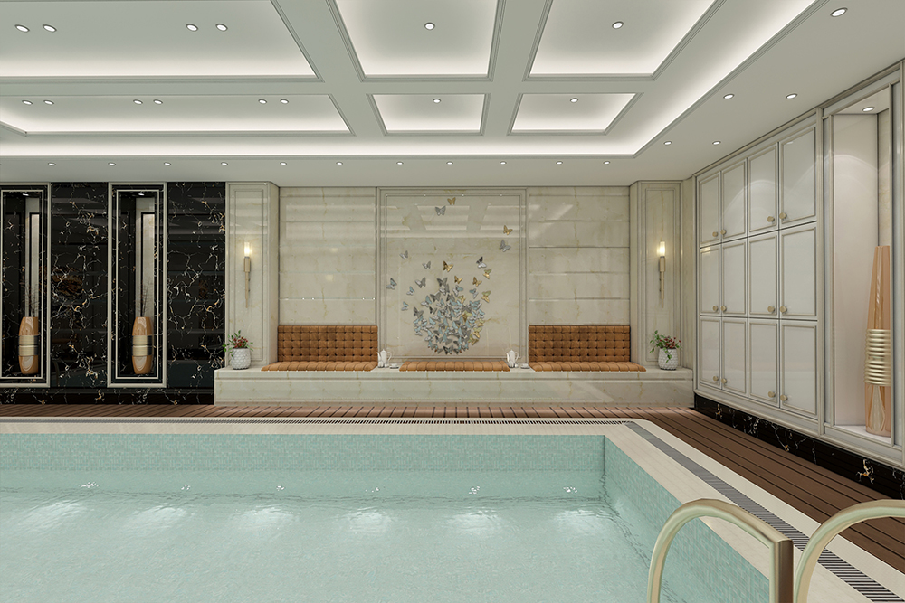 طراحی داخلی استخر پروژه ۴۴۰ متری آقای حمزئیان طراحی داخلی استخر به سبک مدرن متراژ کلی پروژه ۴۴۰ مترمربع طراحی داخلی پارکینگ پروژه ۴۴۰ متری آقای حمزئیان طراحی داخلی لابی پروژه ۴۴۰ متری آقای حمزئیان