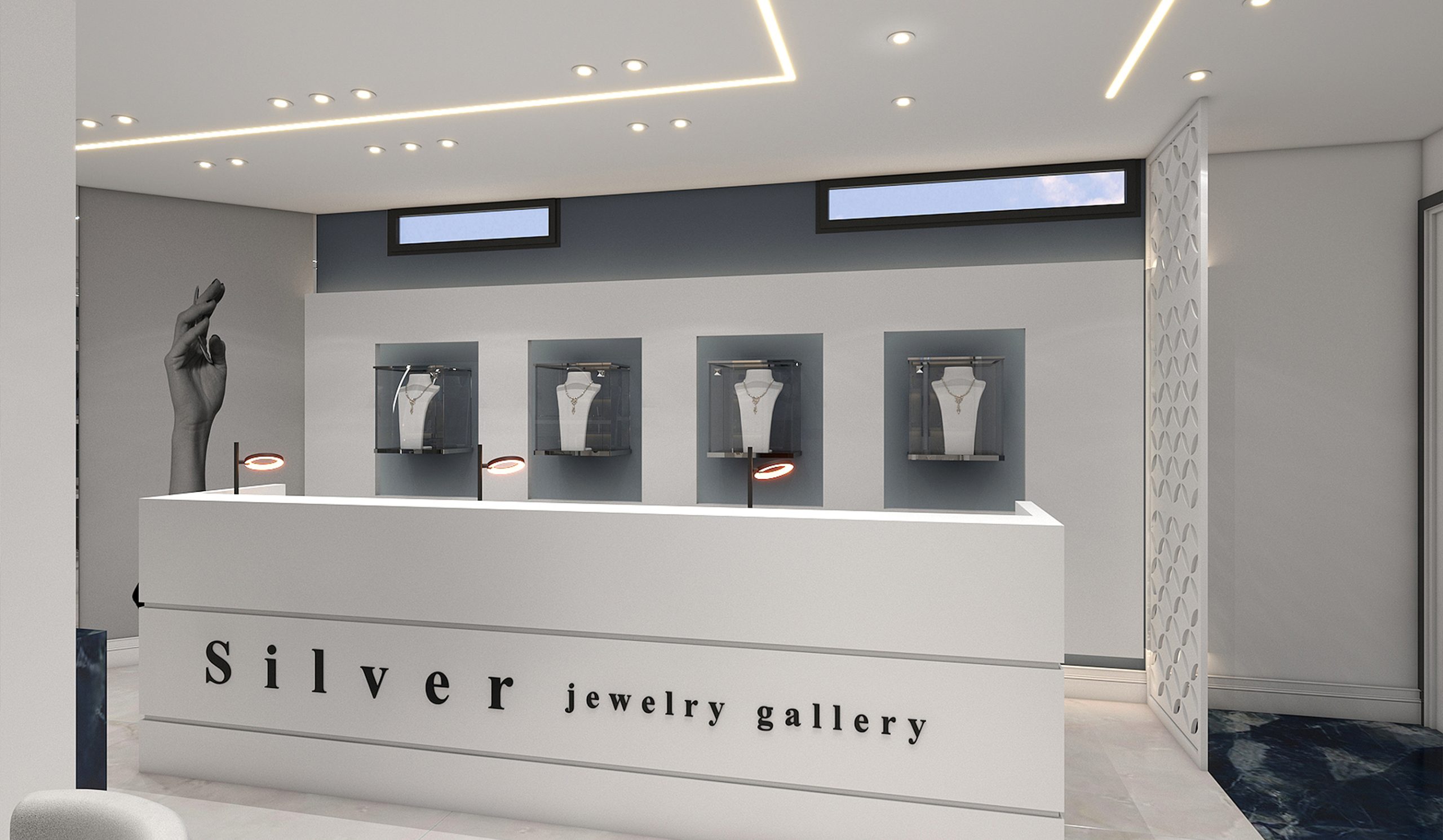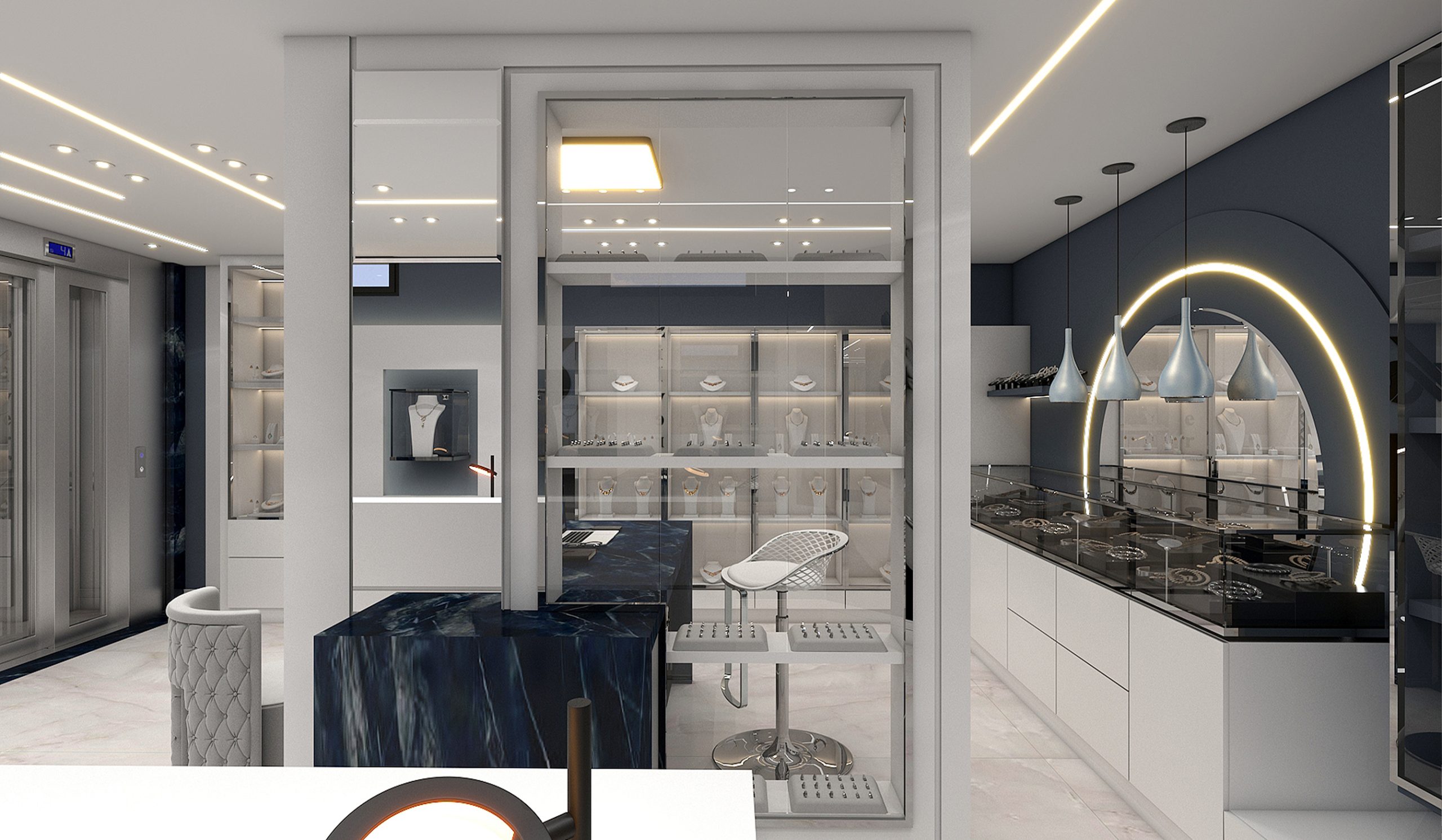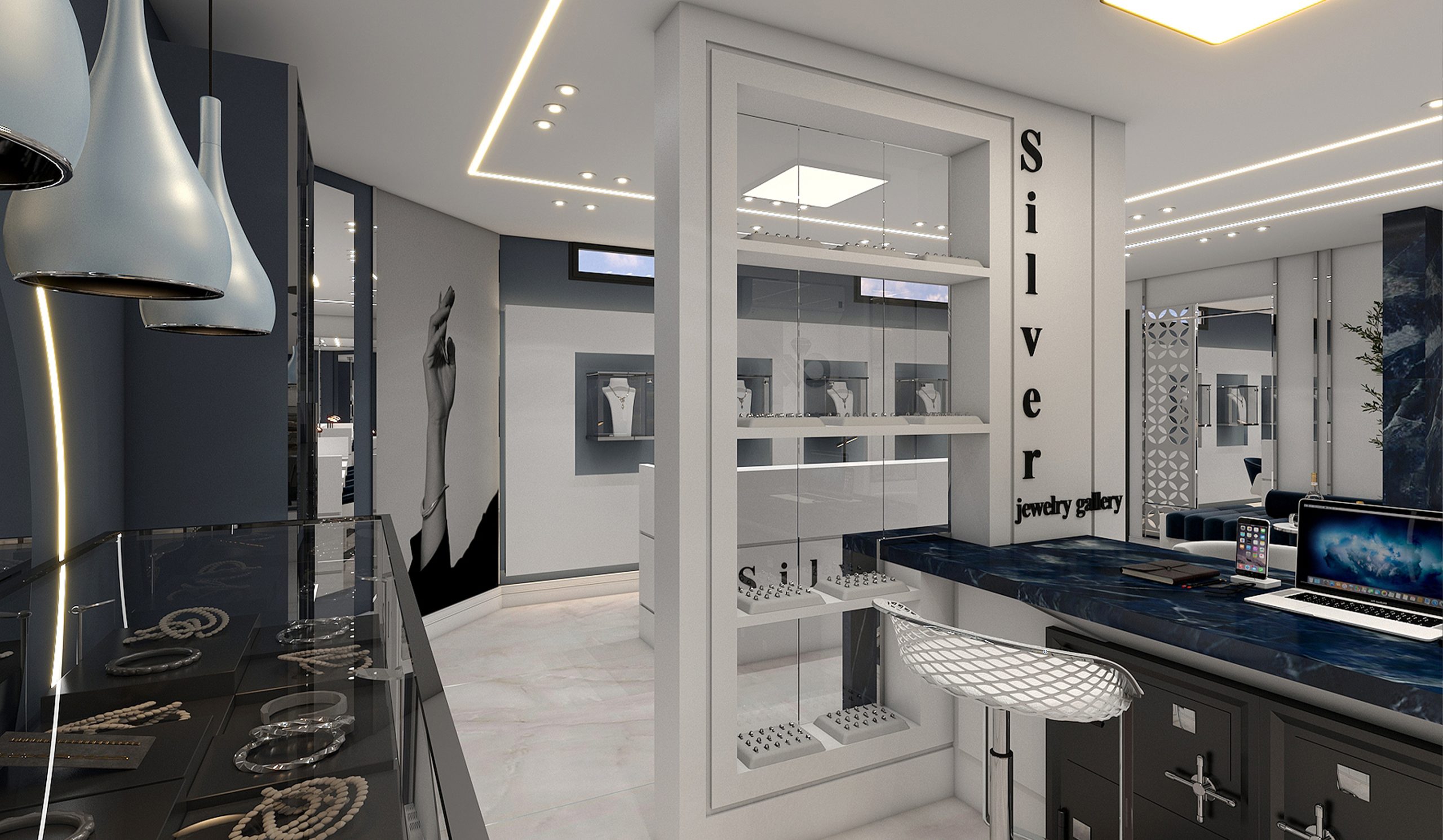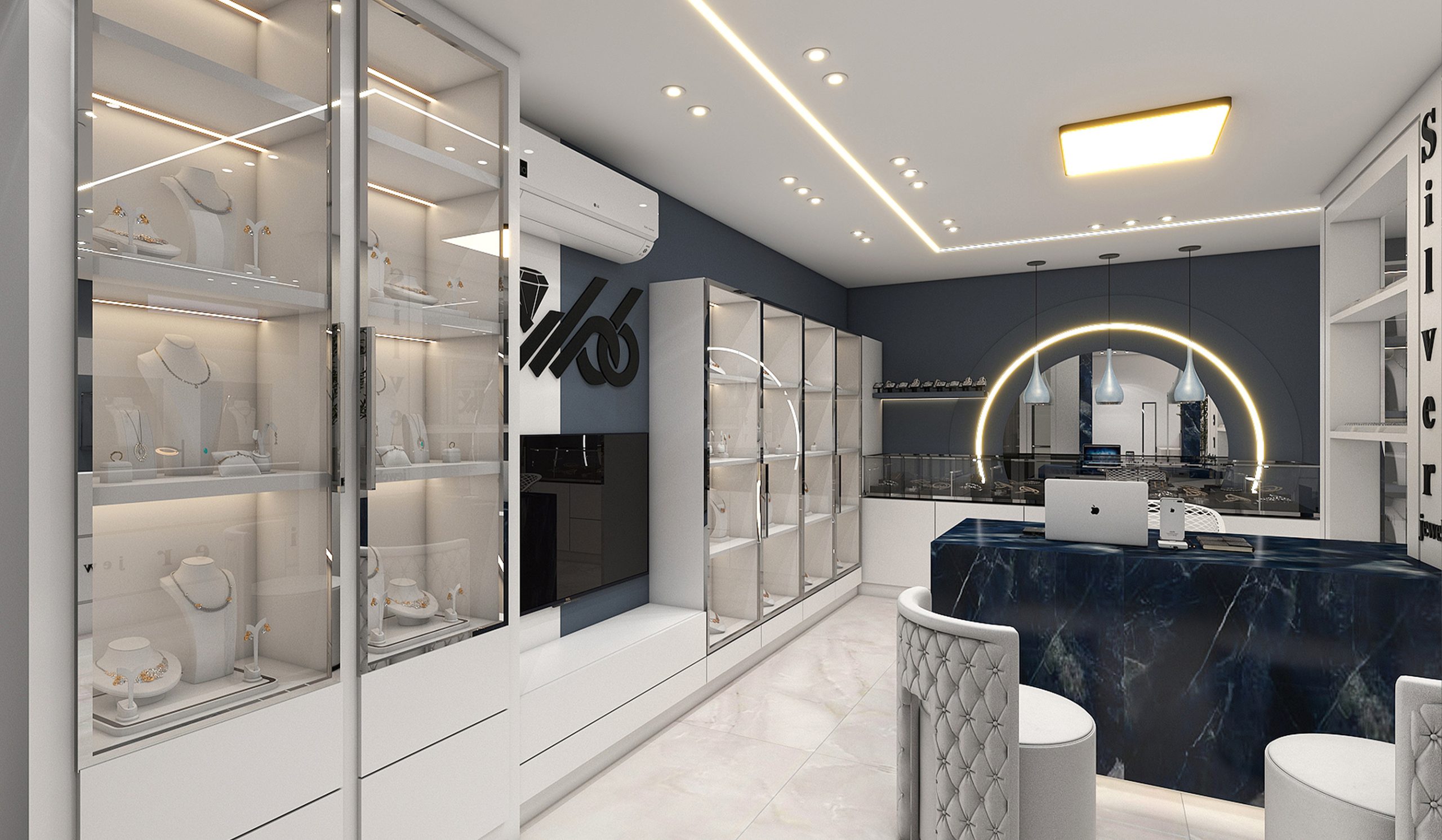 طراحی داخلی جواهر فروشی به سبک مدرن به متراژ ۱۵۰ مترمربع.