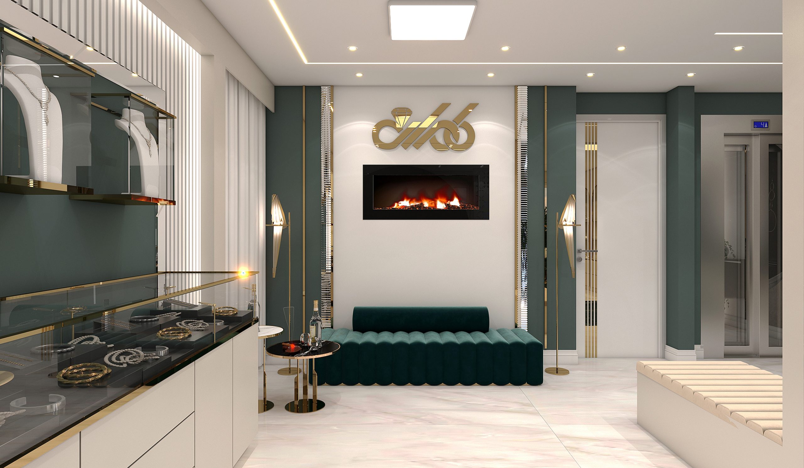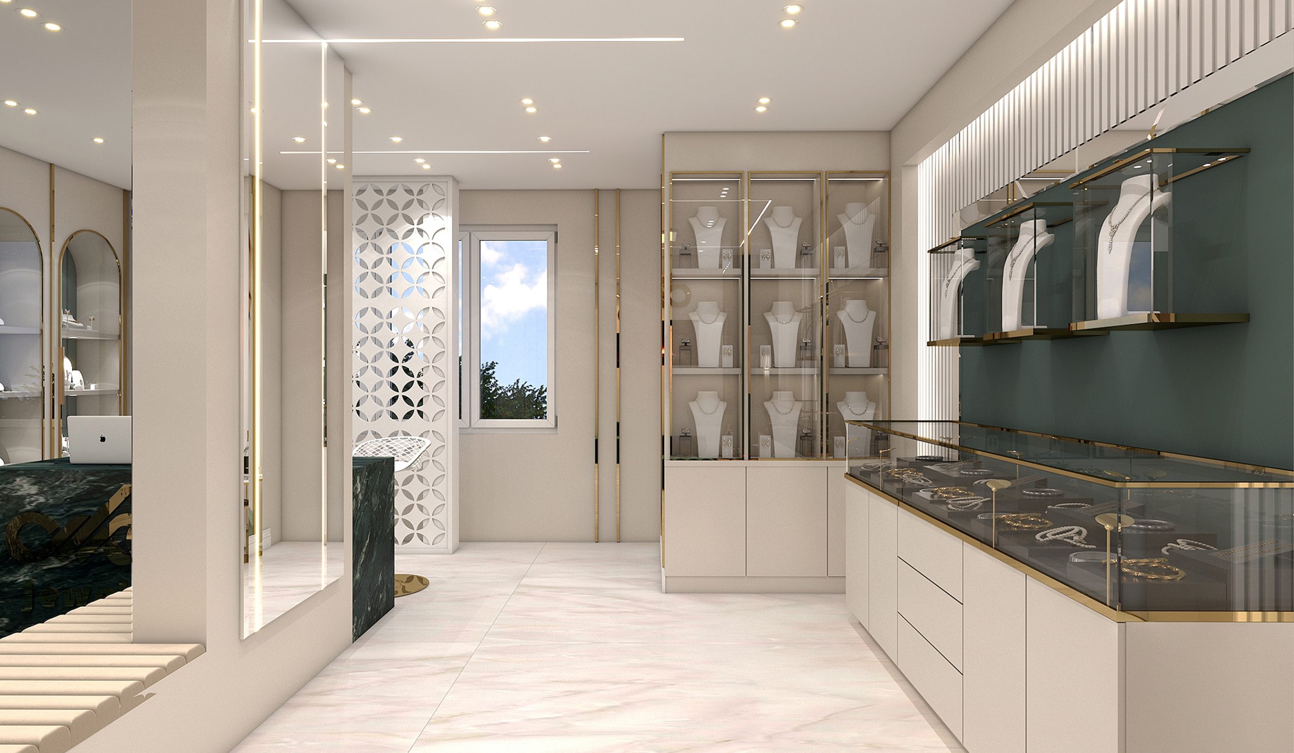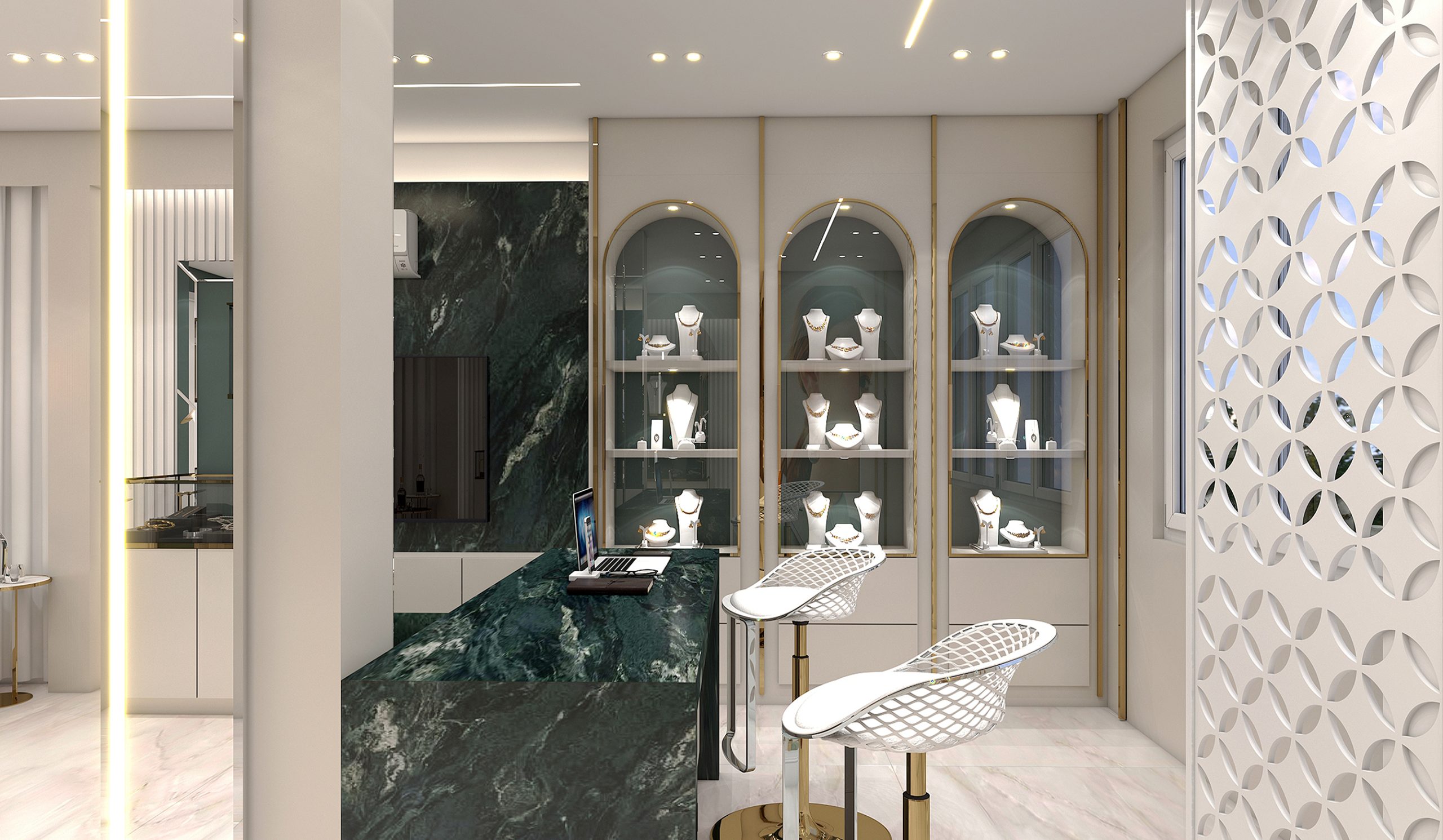 طراحی داخلی جواهر فروشی طبقه اول به سبک مدرن به متراژ ۱۵۰ مترمربع