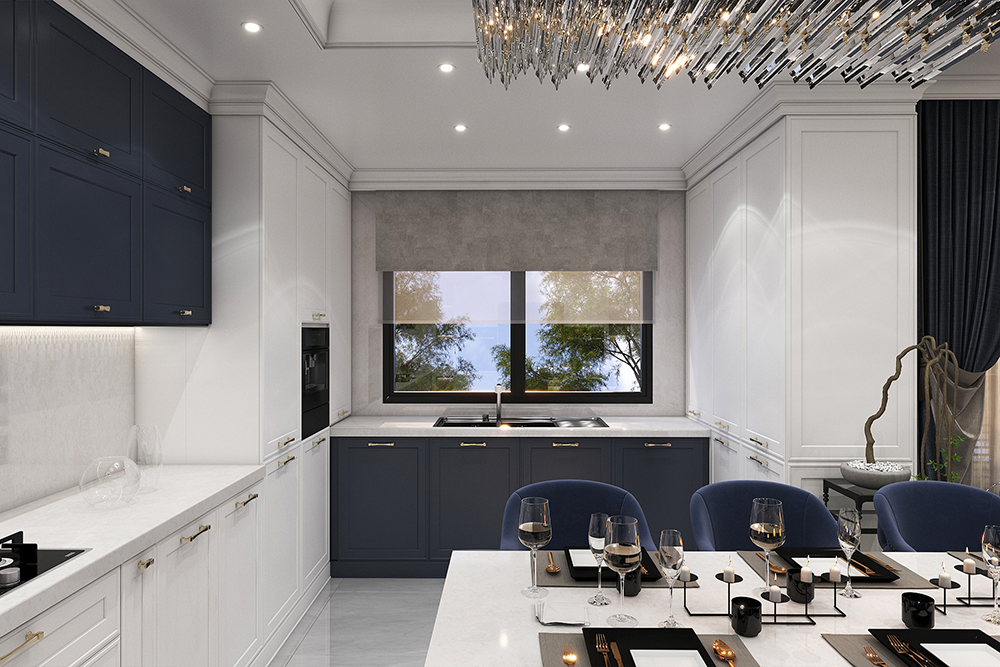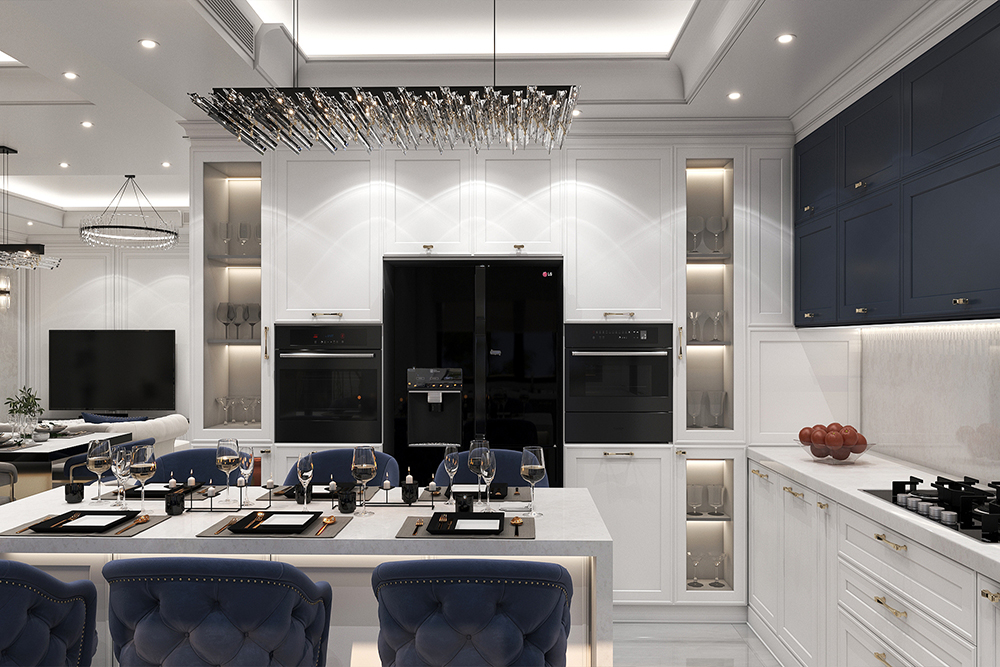 طراحی داخلی سالن پذیرایی و اشپزخانه