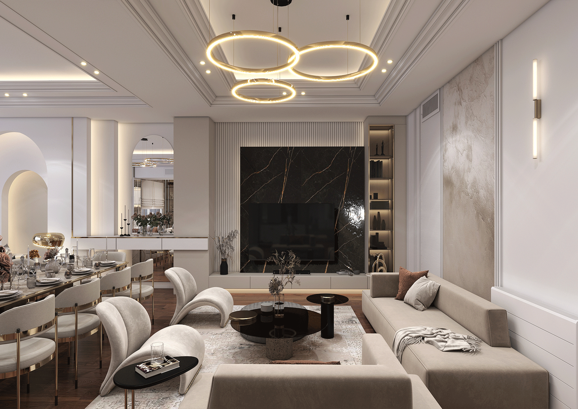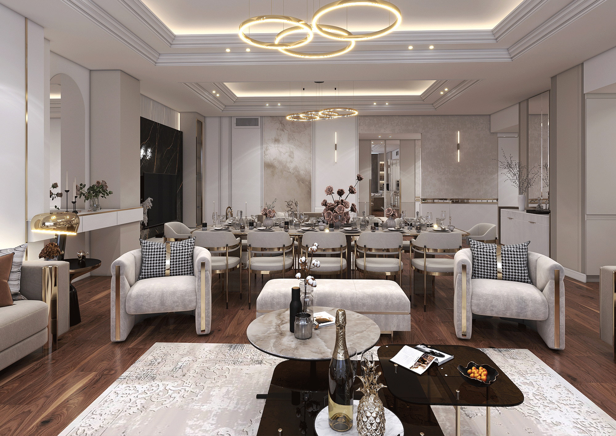 خانه » Portfolios » بازسازی ساختمان » طراحی سالن پذیرایی پروژه ۲۰۰متری آقای حسینی