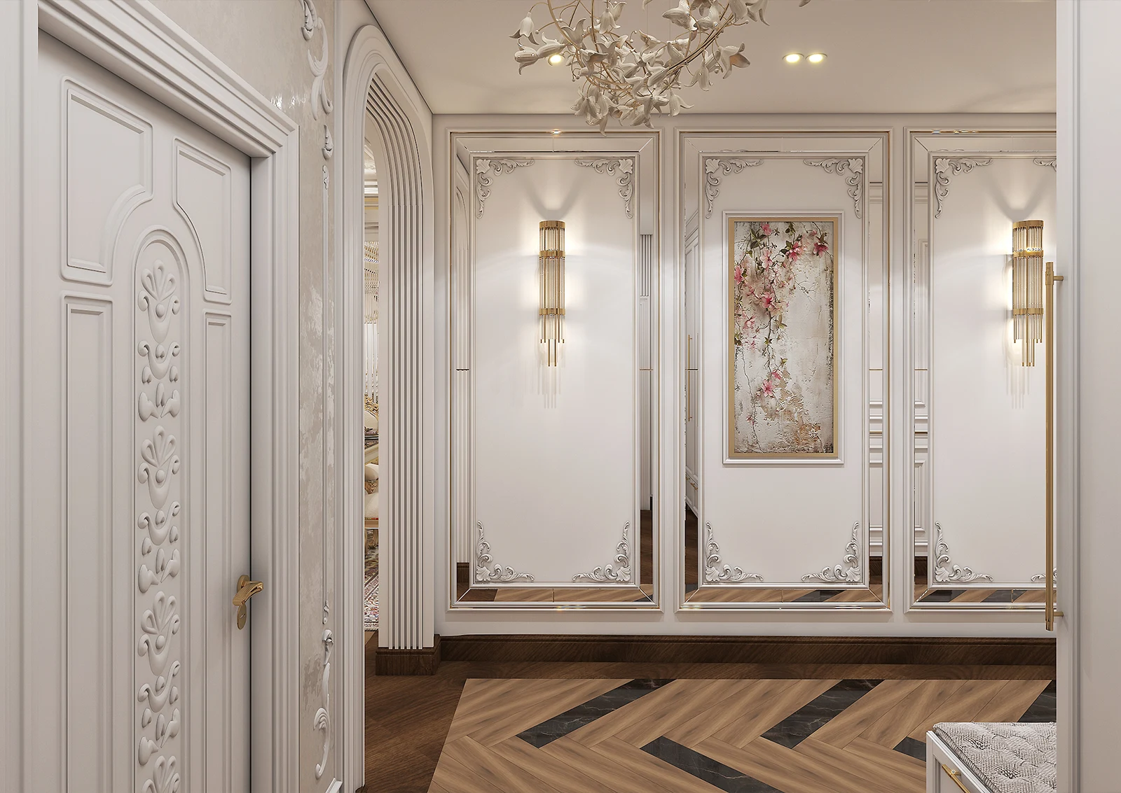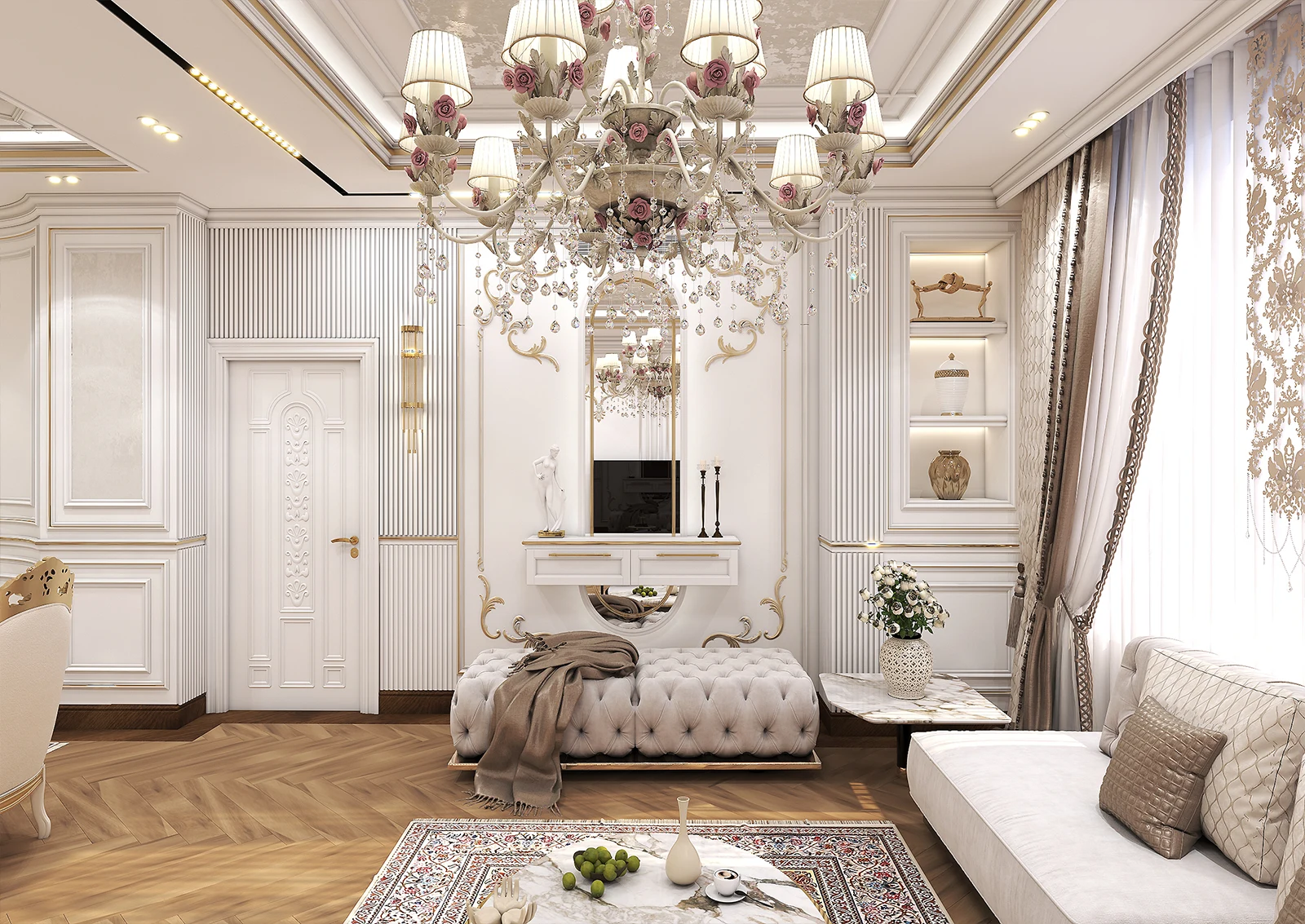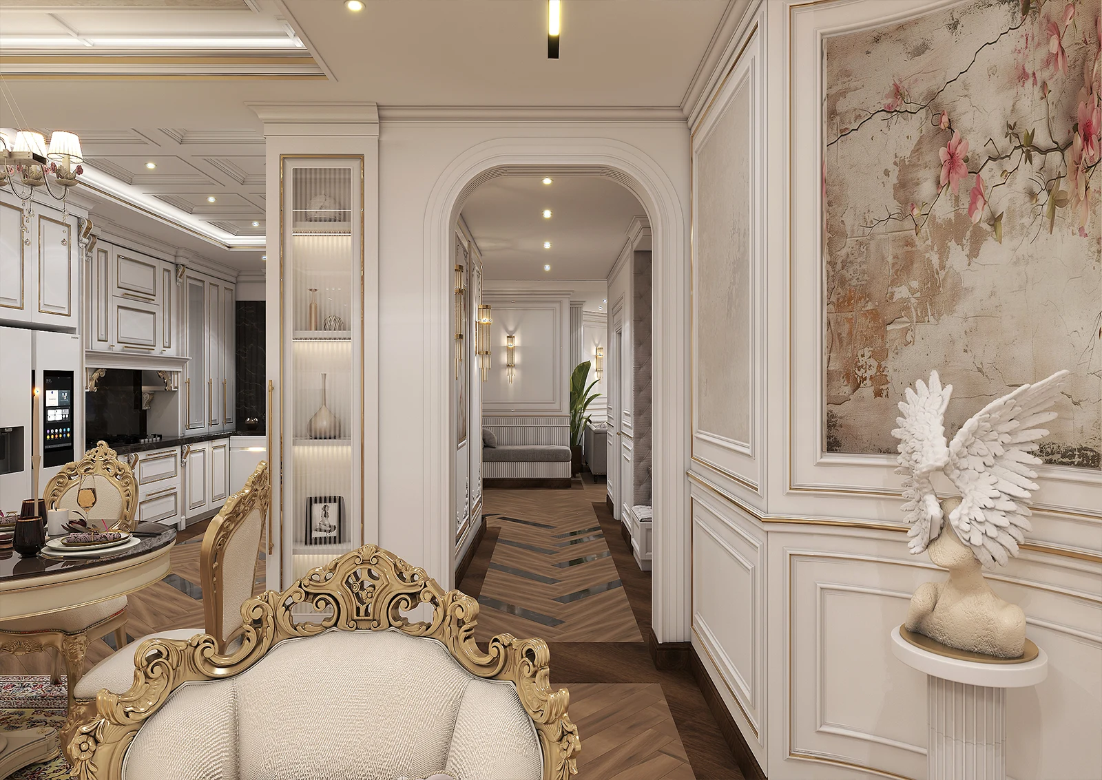 سبک نئو کلاسیک و لوکس – نورپردازی هنرمندانه – تزئینات دیواری چشم‌گیر –