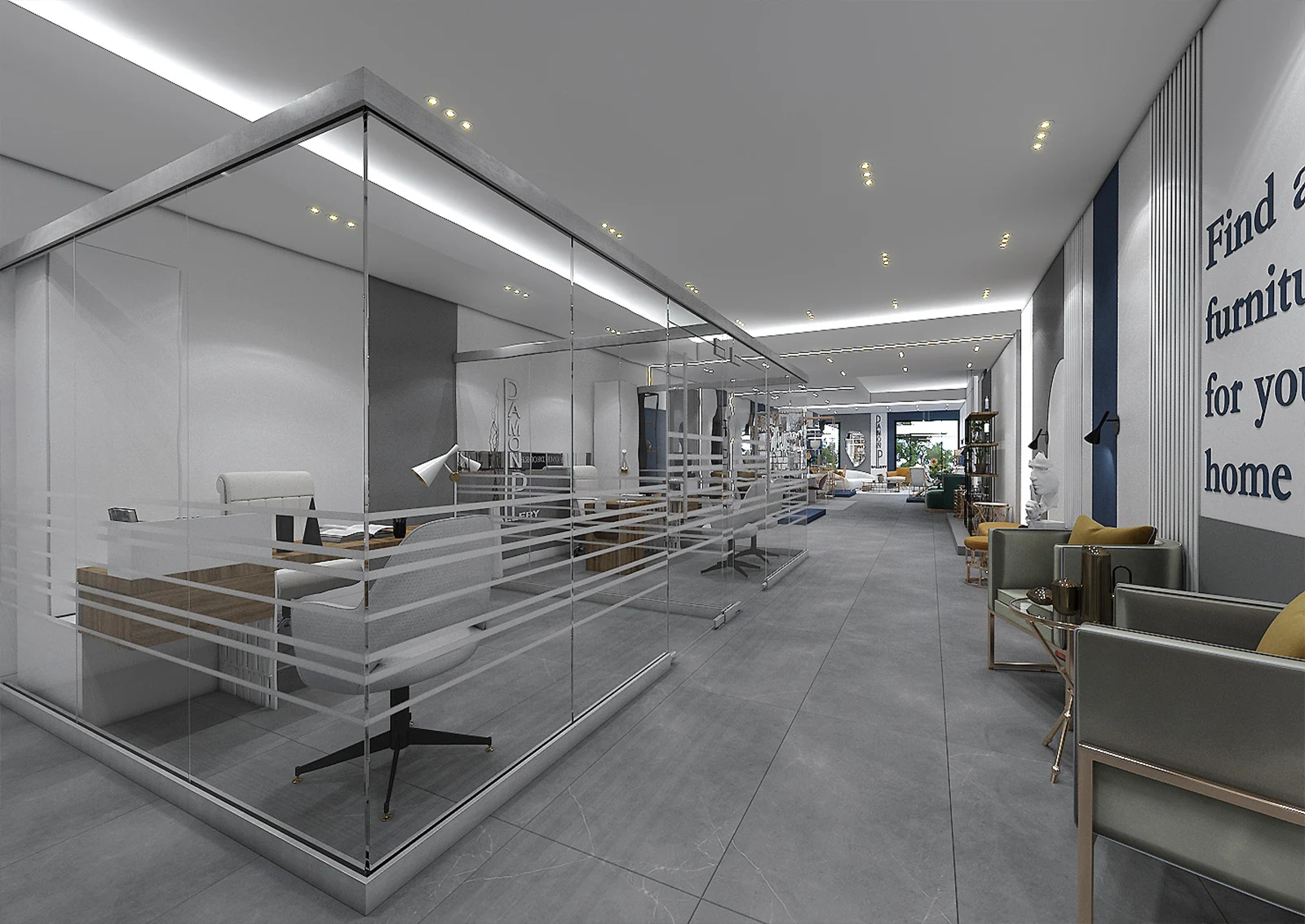 طراحی نمایشگاه مبلمان پروژه ی ۱۴۰ متری آقای دشتی در یزد