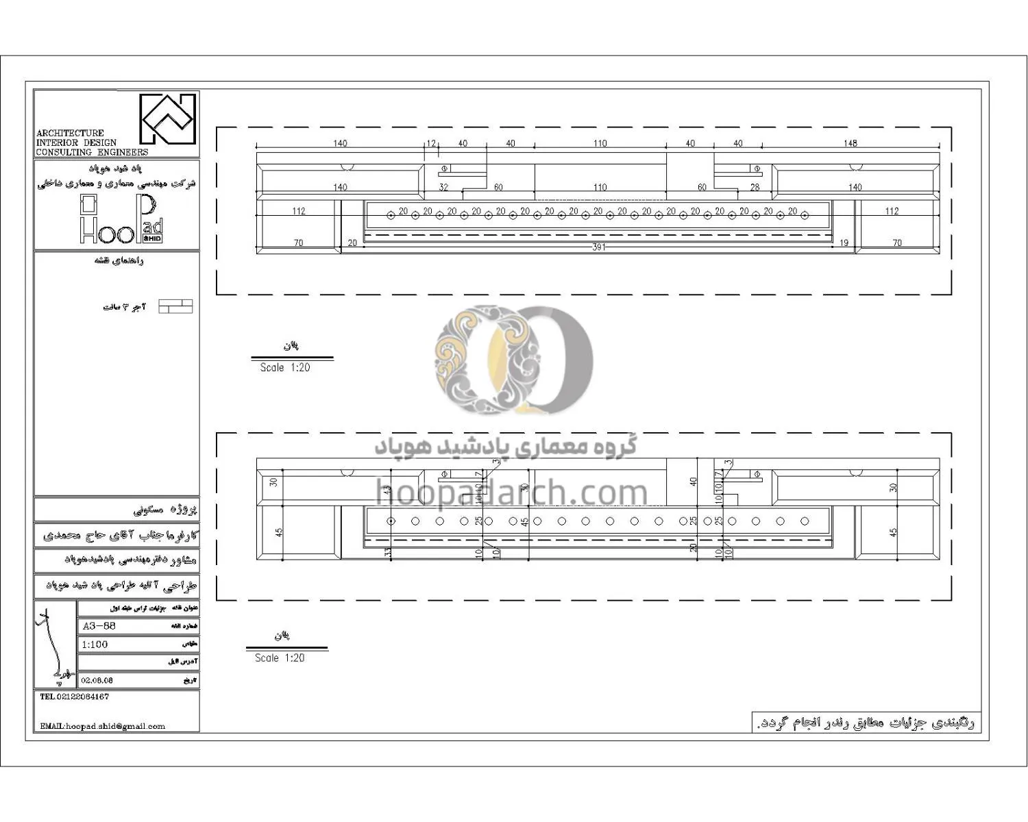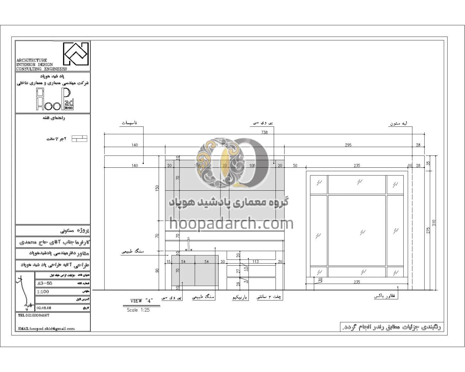 نقشه های اجرایی پروژه ۴۰۰ متری رفسنجان آقای حاج محمدی طراحی نما پروژه ی ۴۰۰ متری در رفسنجان آقای حاج محمدی طراحی داخلی سالن پذیرایی و نشیمن پروژه ۴۰۰ متری رفسنجان آقای حاج محمدی طراحی روف گاردن پروژه ۴۰۰ متری رفسنجان آقای حاج محمدی